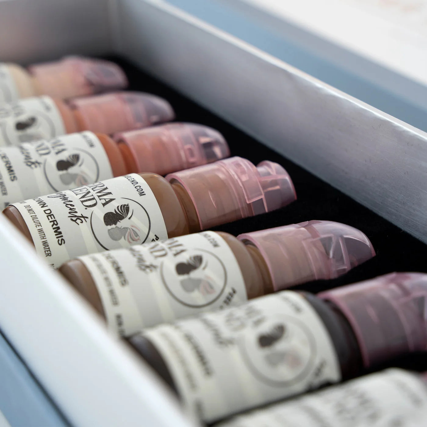 Created by Mandy Sauler, this comprehensive Perma Blend Scar Set contains 6 pigments that are made to last long and heal well. The set is specifically designed for camouflaging scars with cover-up cosmetic tattoos. This listing is for the 1/2oz Scar Set; see below for all colors included in the set.